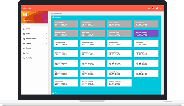 Достаточно зайти на домашнюю страницу Hello.CRM и сразу же получить всю полноценню картину дня происходящую в Вашей организации! А если этого не достаточно, всегда под рукой "Отчет руководителя"!